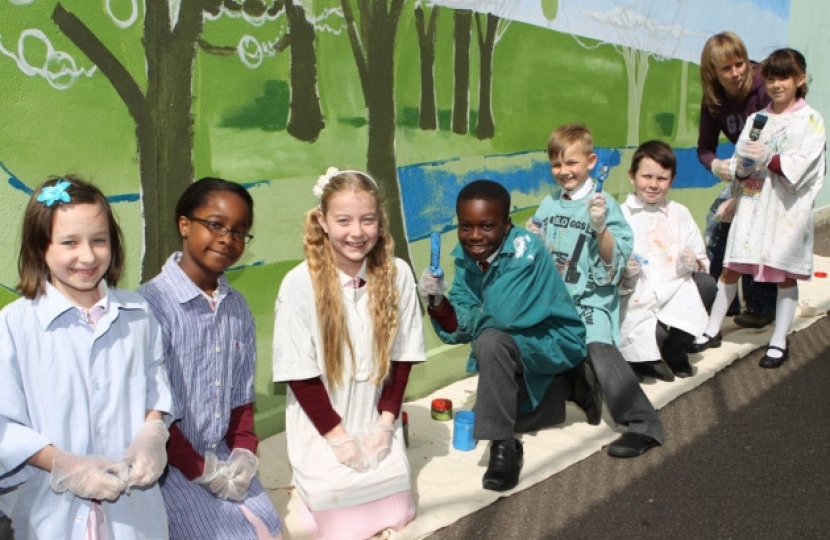 With support from our MP Grant Shapps and funding from the Arts Council, and an incredible amount of work by local artist Angela Bull and a large number of adult volunteers & local primary & secondary school children, as part of a Big Society project, we have been able to produce a very impressive mural.